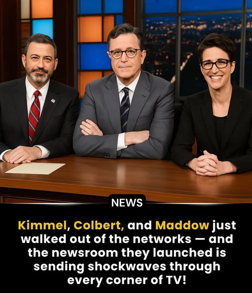 In a move that has sent shockwaves across the media landscape, three of America’s most recognizable television figures—Rachel Maddow, Stephen Colbert, and Jimmy Kimmel—have made the bold decision to walk away from their long-established network contracts to launch an independent newsroom. The announcement, released simultaneously across their social media platforms on Friday morning, has left the television and journalism industries reeling and audiences buzzing about what this could mean for the future of news.