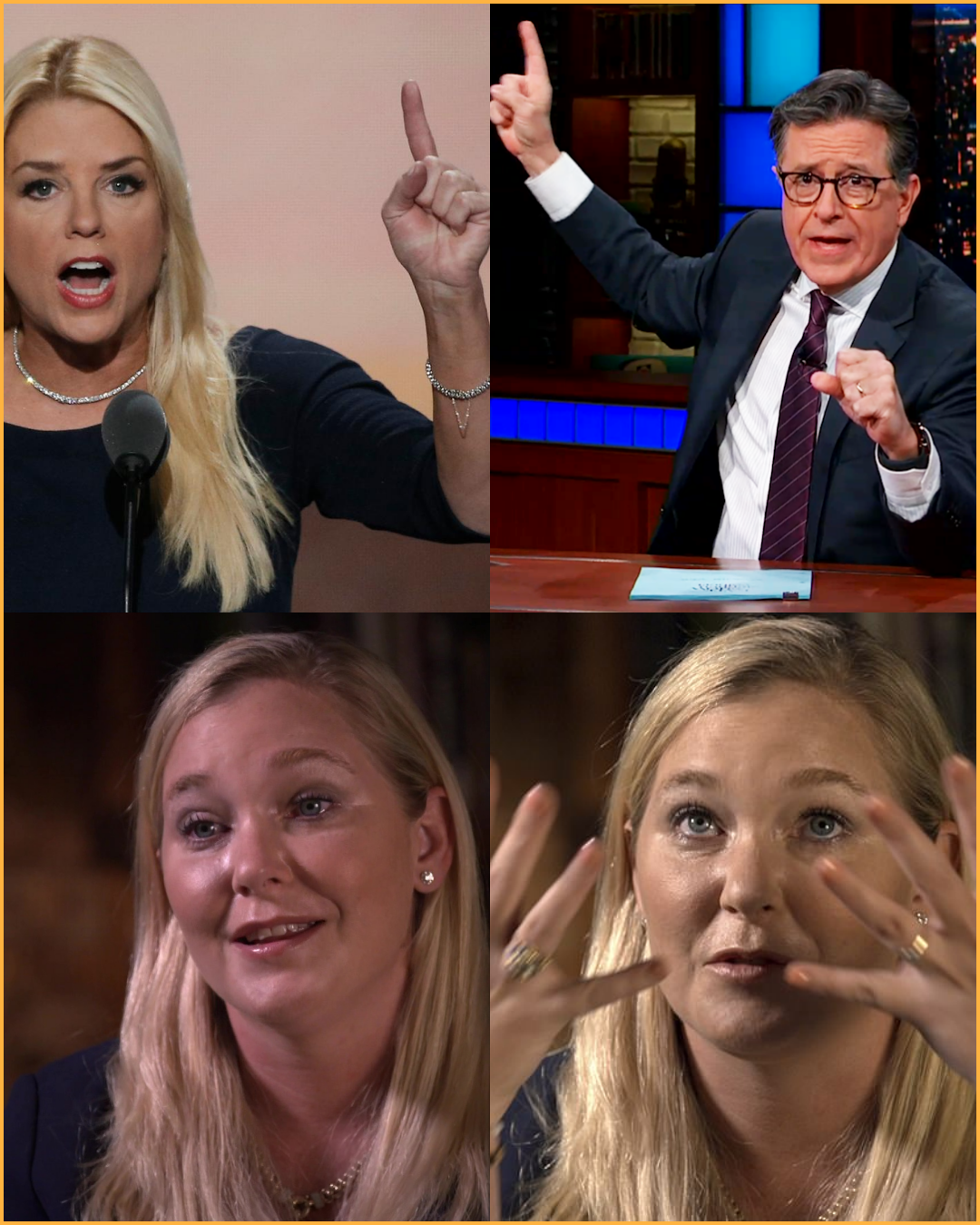 In a night already rattled by Stephen Colbert’s explosive monologue, another shockwave tore through the country — this time from Pam Bondi, who unleashed a blistering rebuttal that instantly ignited a political and cultural firestorm.
