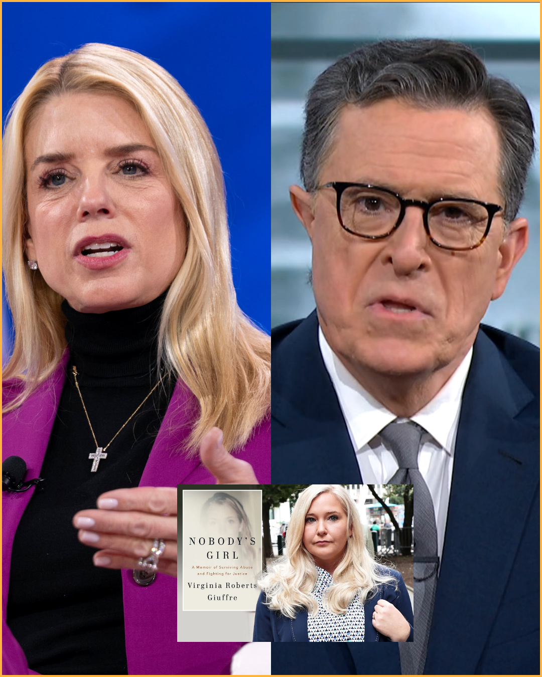 In what many are calling one of the most shocking moments in late-night television history, former Florida Attorney General Pam Bondi confronted Stephen Colbert on The Late Show in a fiery and highly charged exchange that left the studio audience stunned. The confrontation centered on Colbert’s recent comments regarding accountability and powerful figures accused of hiding the truth — comments that Bondi refused to let slide.