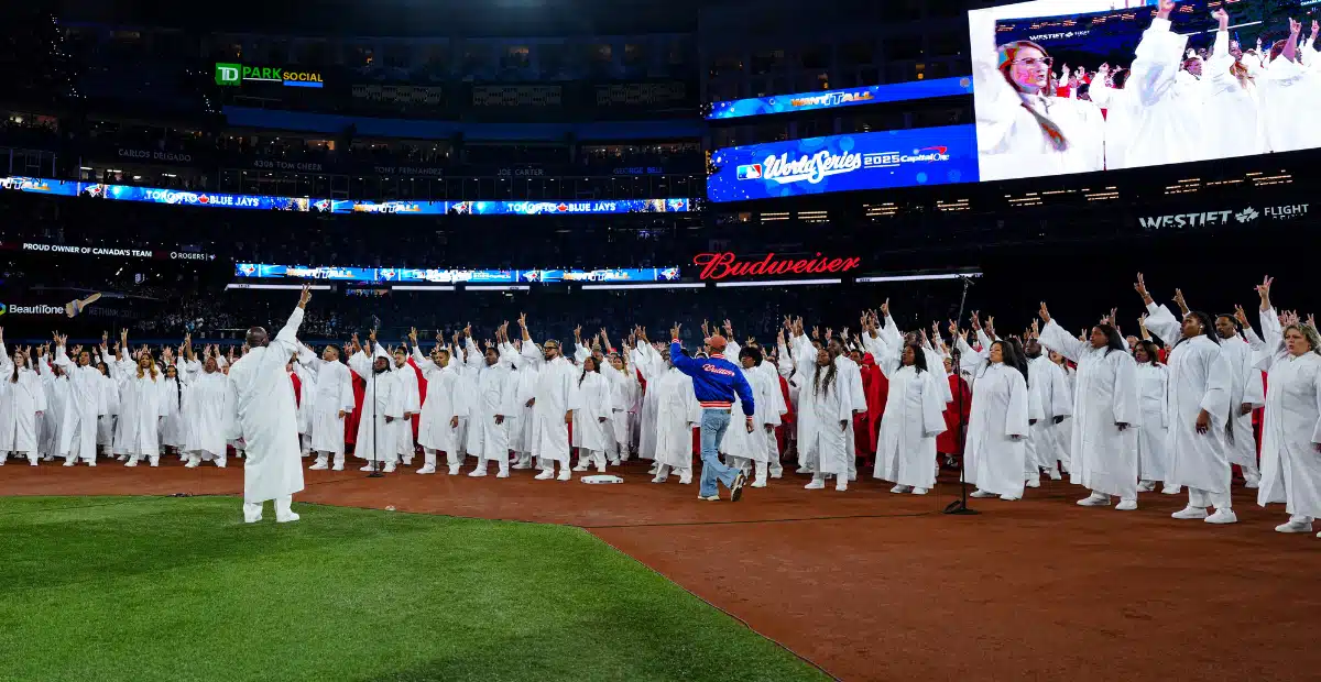 The combination of Pharrell’s artistic vision, the choir’s soaring harmonies, and the electric atmosphere of Game 1 made for an unforgettable opening to the 2025 Fall Classic.