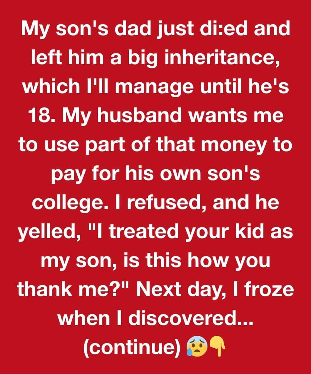 My son’s father died and left Malik a sizeable inheritance, with me as trustee until he’s eighteen. The day I told my husband I wouldn’t use any of that money for his son’s college, he exploded.