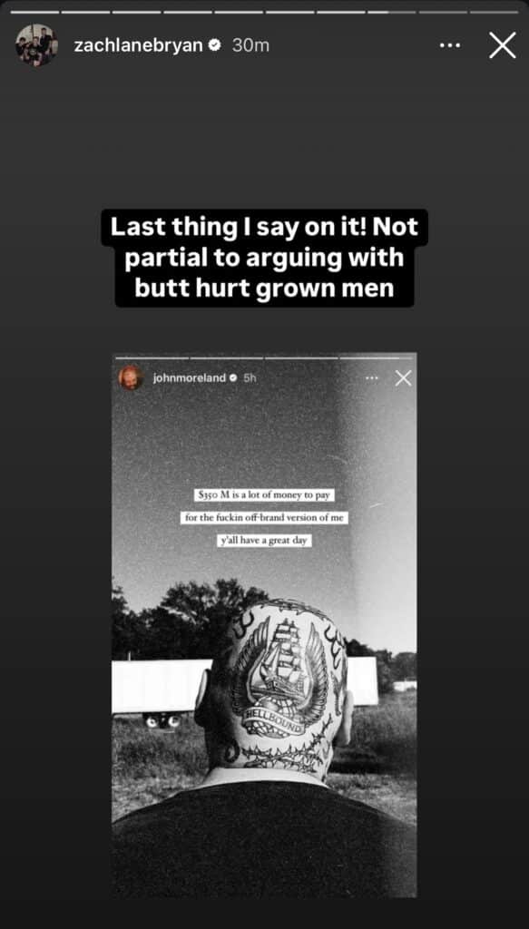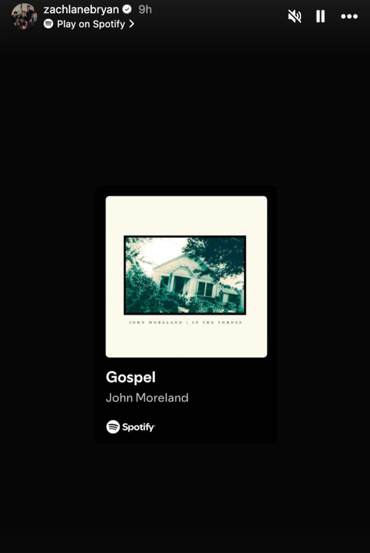 Fast forward to now, and Zach appears to have softened. He shared an Instagram story showing he was listening to Moreland’s song “Gospel.”