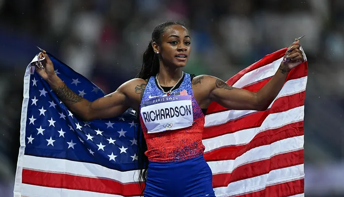 The sprinter made her Olympic debut in Paris in 2024, winning gold in the women’s 4×100-meter relay and silver in the 100 meters.
