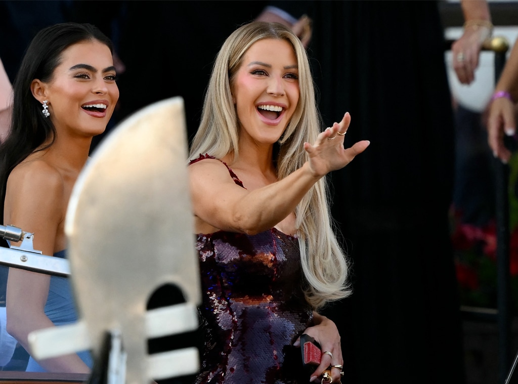 Ellie Goulding waved to a friend while attending the wedding ceremony.